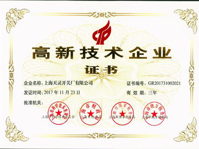 2017高新技术企业证书